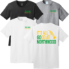 3.8 oz. 100% wicking polyester, UPF 50 — embroidered teacher’s name left chest over “#northwoodshiningstaff” and ink’d logo full back