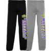7.8 oz. 50/50 cotton/poly fleece, elastic, self-fabric waistband and self-fabric cuffs — imprinted logo left leg